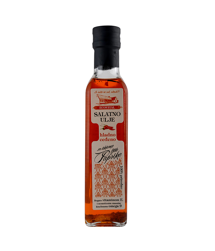 Dobijeno prirodnim postupkom hladnog presovanja semena suncokreta i uz dodatak ljute paprike idealno je za pripremanje raznih vrsta salata. Specifičan ukus ljute paprike posebno dolazi do izražaja u marinadama, sosevima i umacima. Ovaj salatni preliv učiniće svako jelo pravim kulinarskim specijalitetom.